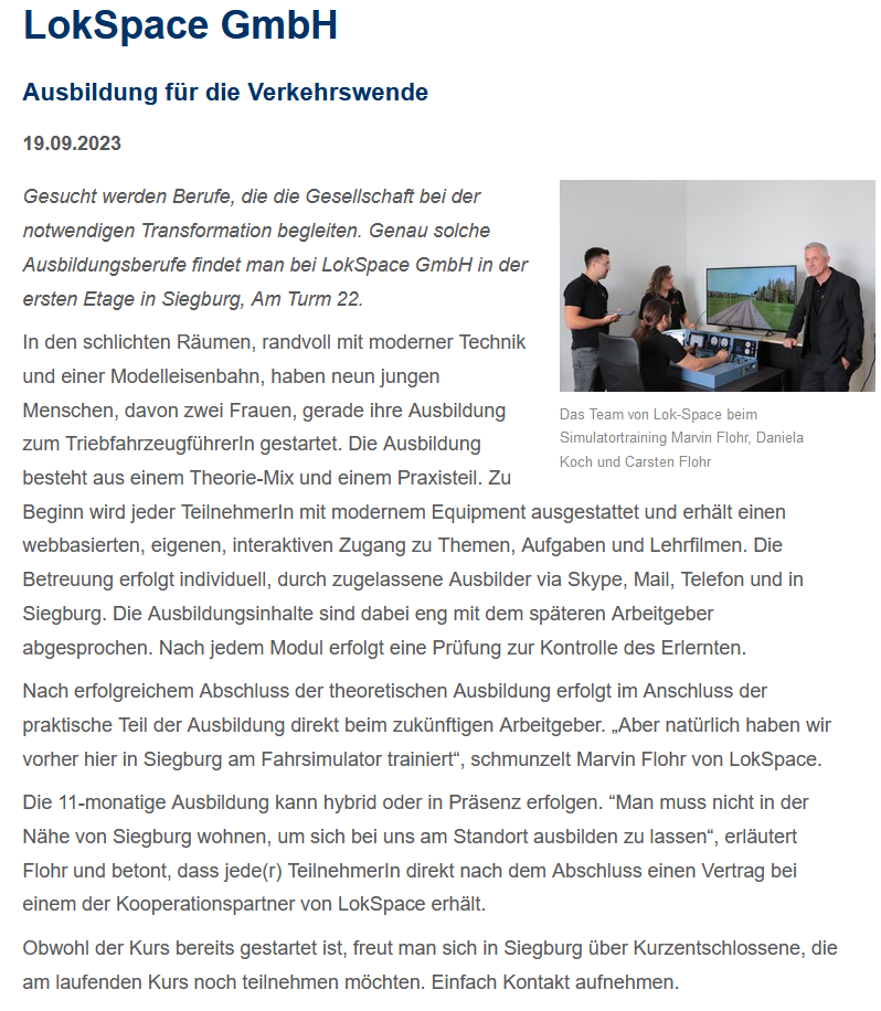 Beitrag über die LokSpace GmbH im Wirtschaftsmagazin der IHK