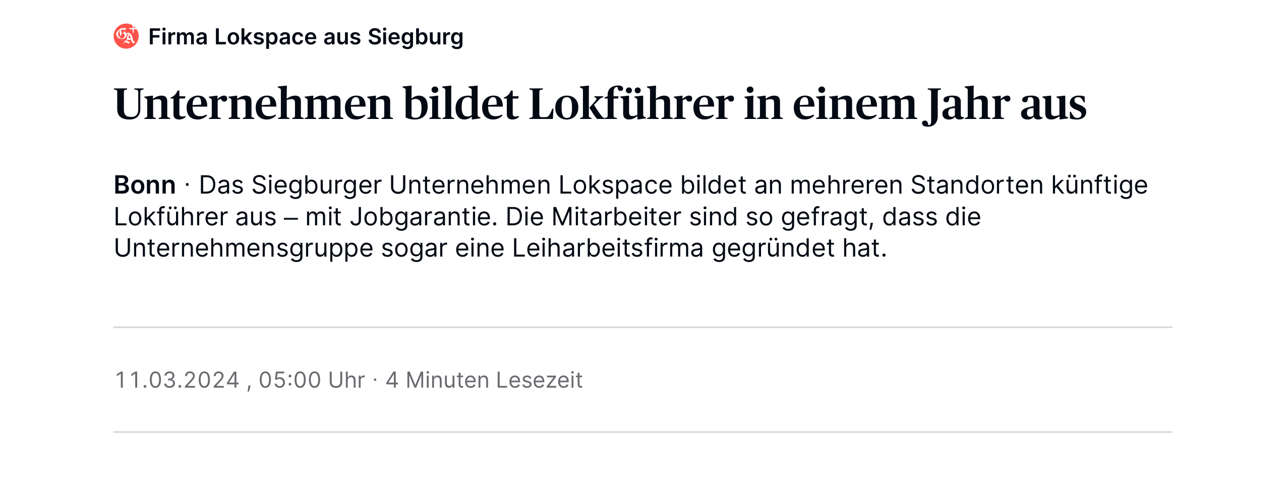 Beitrag über die LokSpace GmbH in Bonner General-Anzeiger