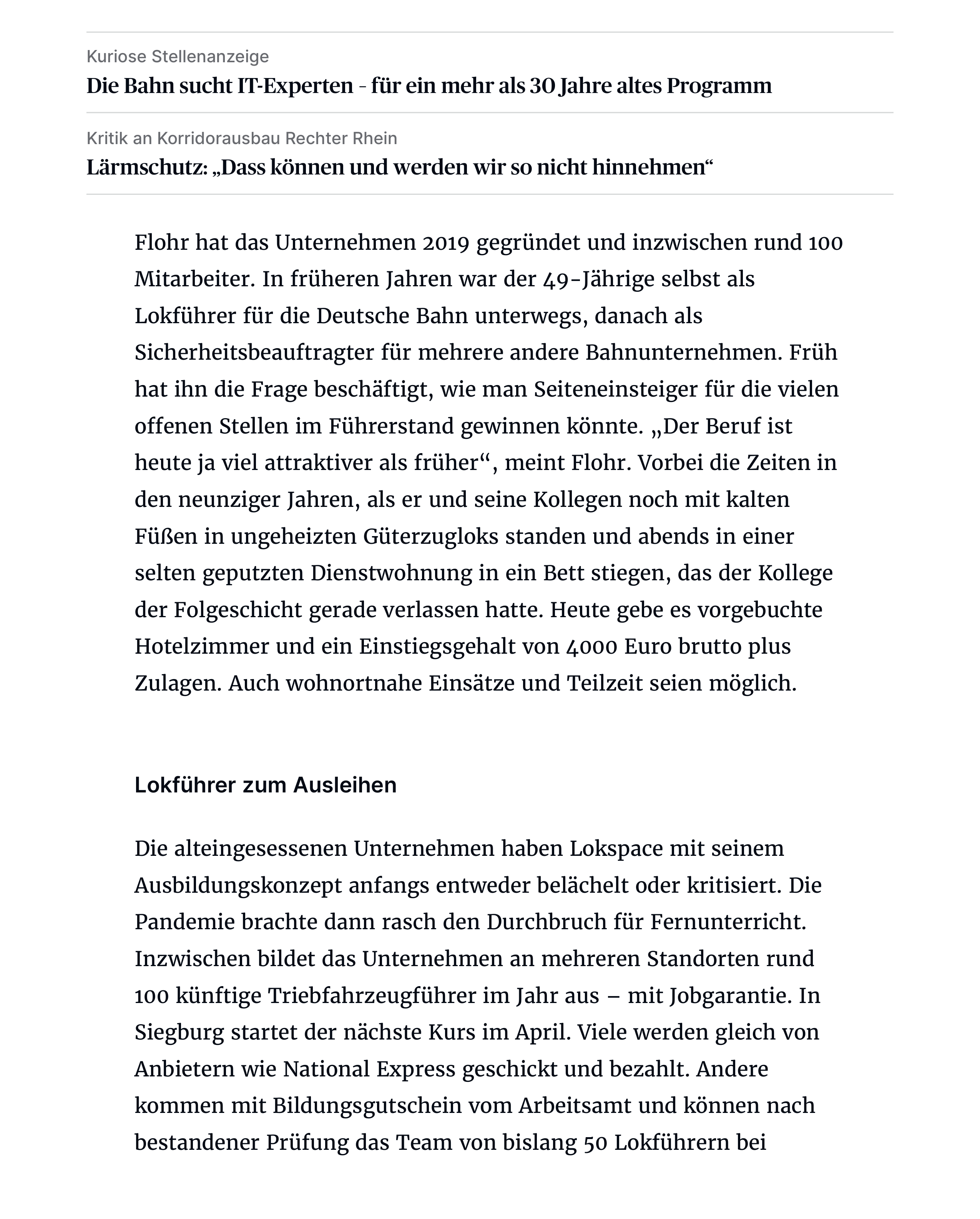 Firma LokSpace aus sieburg bildet lokführer in einem jahr aus